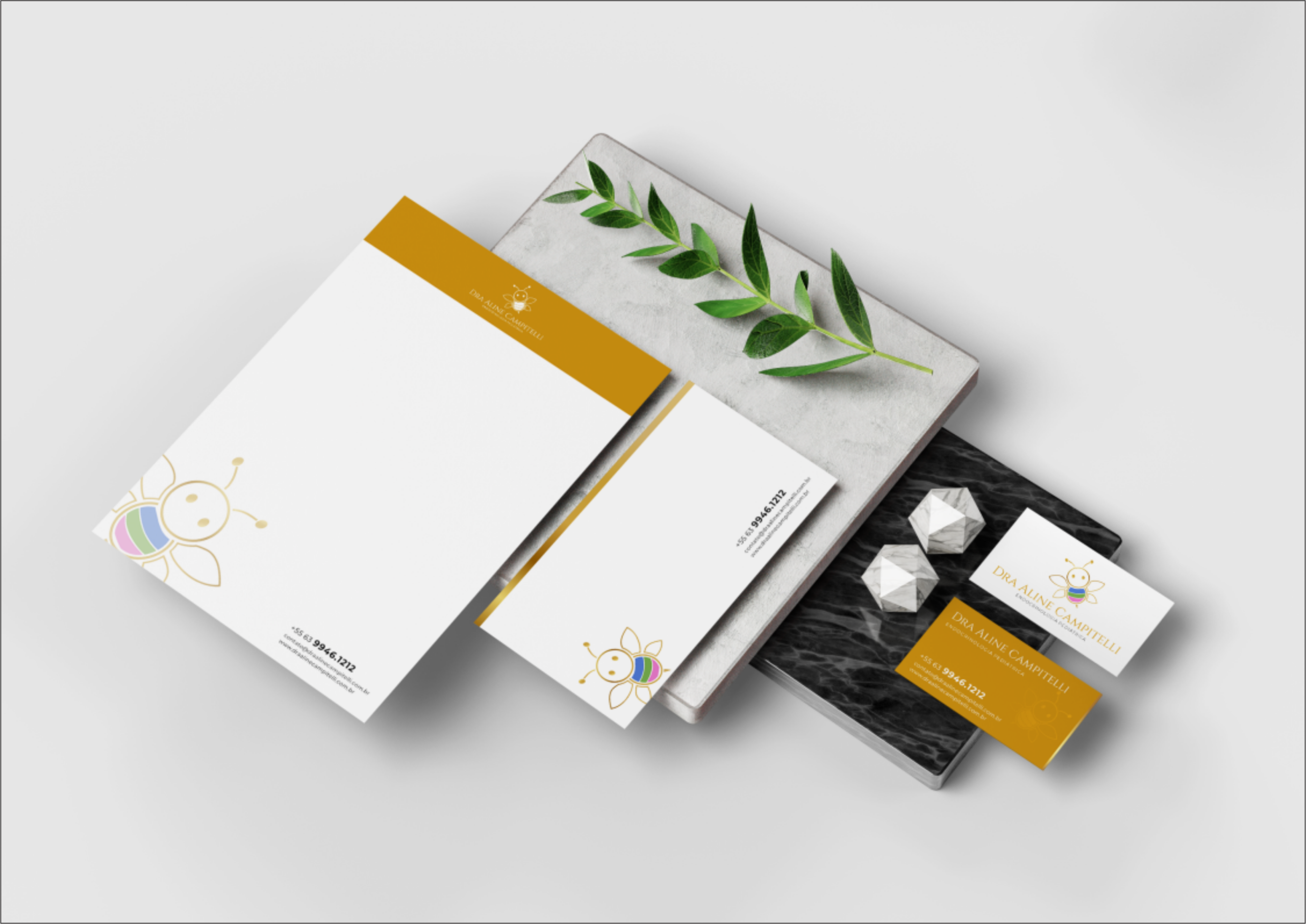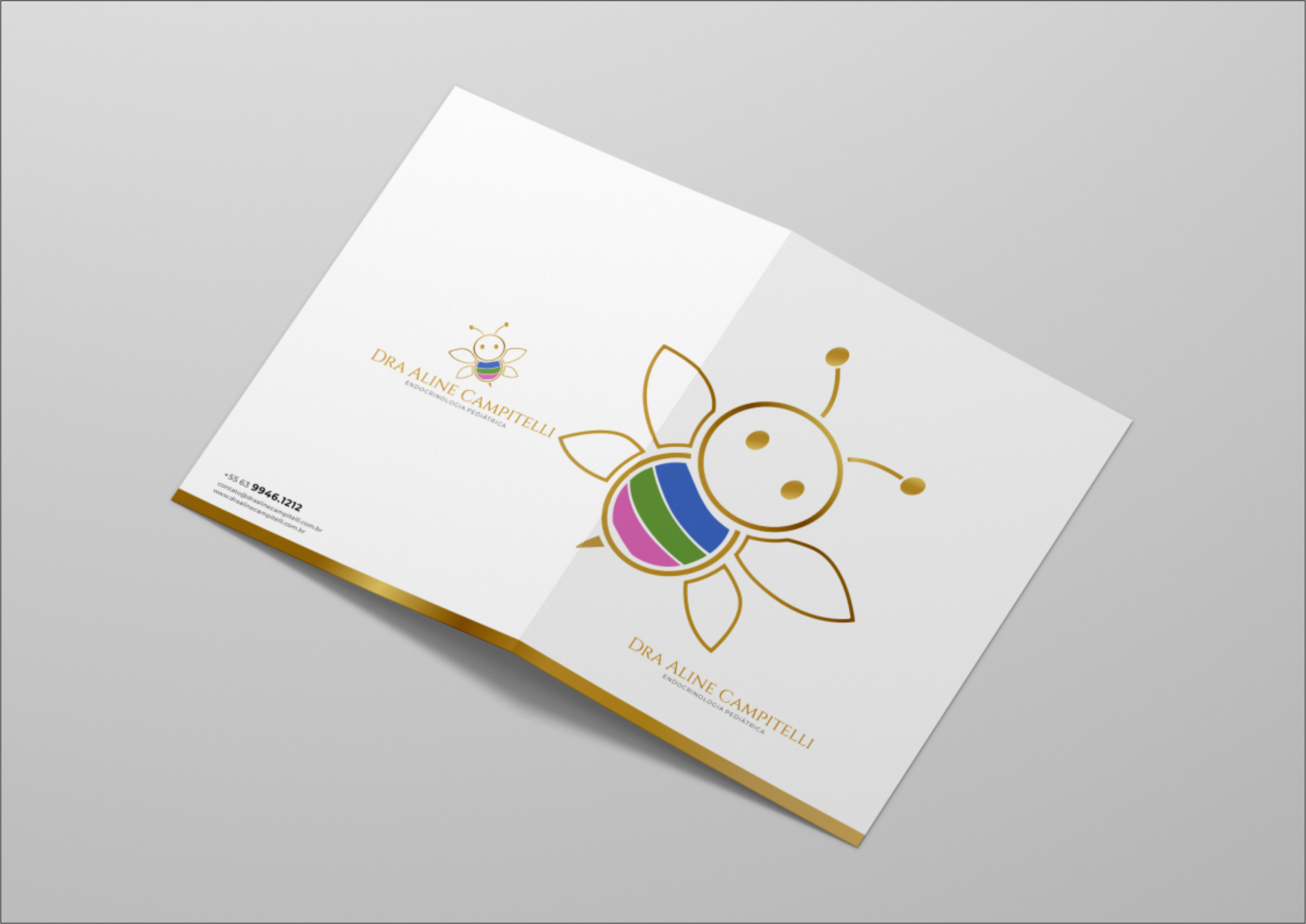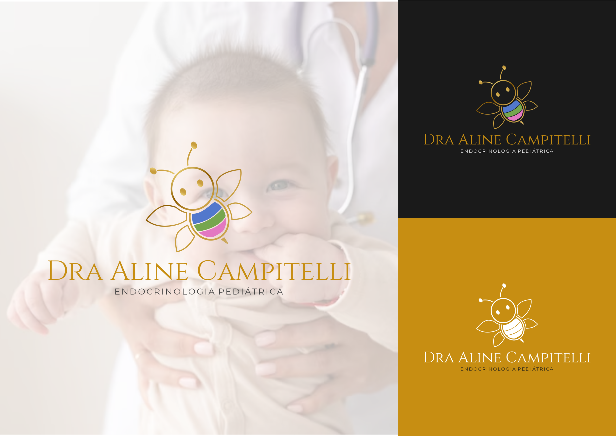 O projeto de identidade visual da Dra. Aline Campitelli foi desenvolvido para unir autoridade médica, acolhimento e comunicação humanizada, essenciais no universo da endocrinologia pediátrica.