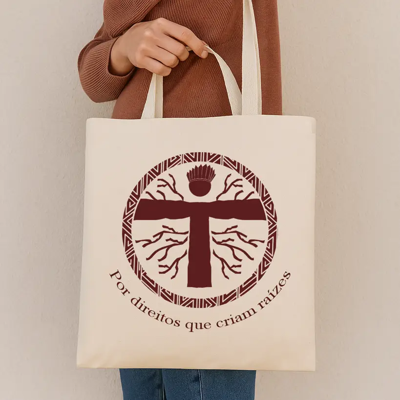 A marca foi construída a partir de símbolos ancestrais, referências à cultura indígena e elementos orgânicos que representam pertencimento, coletividade e crescimento. O símbolo central expressa o ser humano enraizado na terra, em diálogo com a justiça e a cidadania. A paleta cromática, inspirada em pigmentos naturais como urucum, jenipapo, jurema e argila, reforça a conexão com a ancestralidade e o território.