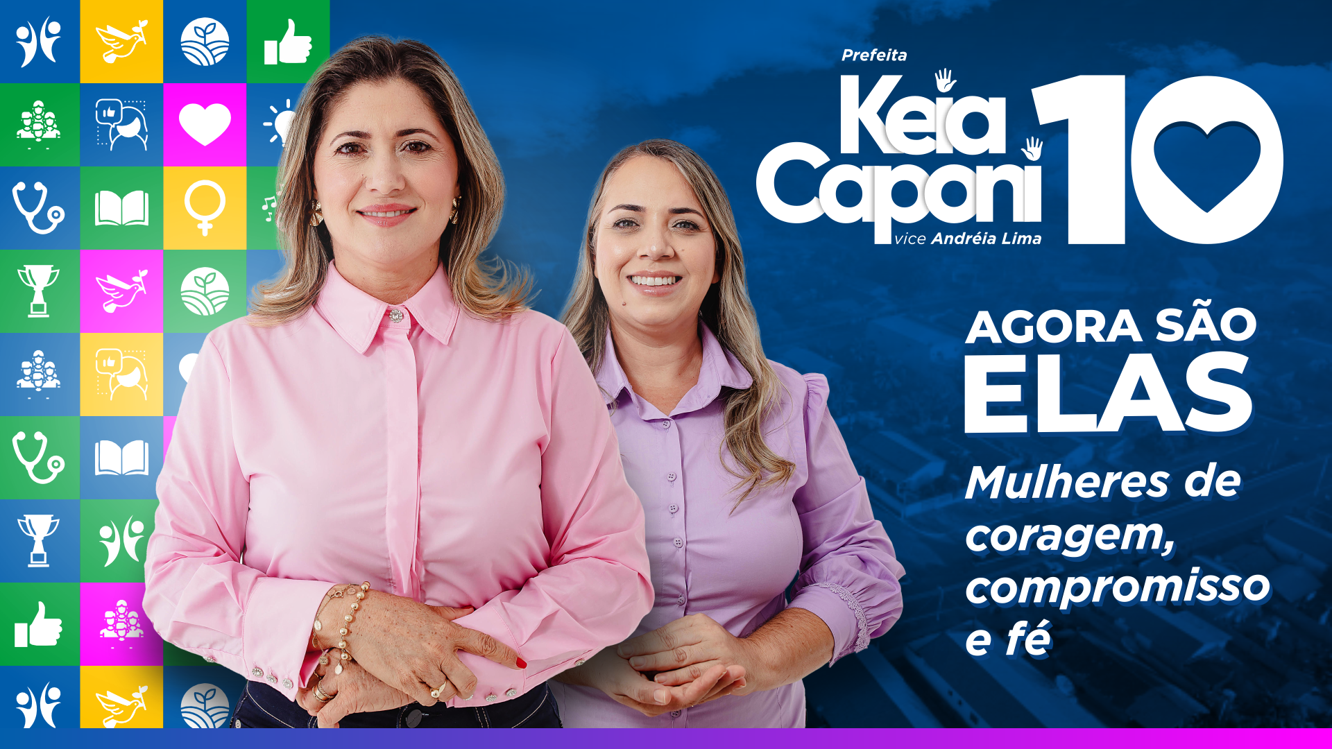 Este projeto nasceu do desafio de traduzir em imagem e conceito uma campanha histórica: a candidatura de Kéia Caponi à prefeitura de Itaporã do Tocantins, ao lado de Andreia Lima, formando a primeira chapa composta por duas mulheres no município.
