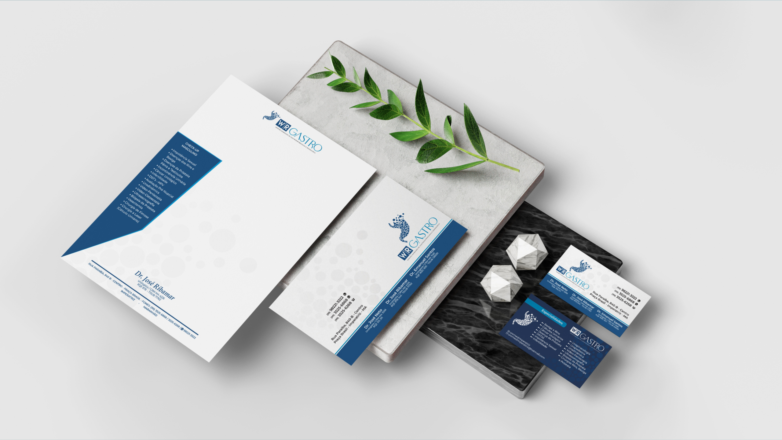 O projeto de identidade visual da WR Gastro foi desenvolvido para posicionar a clínica como um centro avançado de gastroenterologia e endoscopia, unindo precisão técnica, inovação e credibilidade médica.